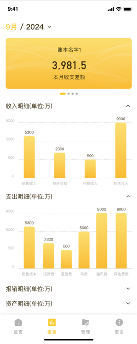 无需携带笨重的电脑,一个手机版APP帮你搞定记账。包含收入明细,支出明细,利润明细,账本管理,报销明细,资产管理,发票管理,更有客户管理,币种管理,项目管理等多种功能,新手适用,简单上手。